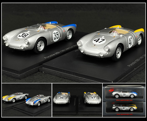 Set de 2 Porsche 550 - 24h Le Mans 1954 n°39 & 47 1/43 - Spark S9706 + S9707