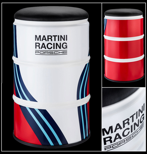 Siège Porsche Martini Racing Réplique d'un baril de pétrole - Utilisation en intérieur ou en extérieur Assise rembourrée - Revêtement simili cuir - Tonneau en métal Hauteur 60 cm - Diamètre 40 cm - Poids 10 kg Made in Germany - Porche WAP0501060PSFS 339,95 € TTC / Incl. Taxes