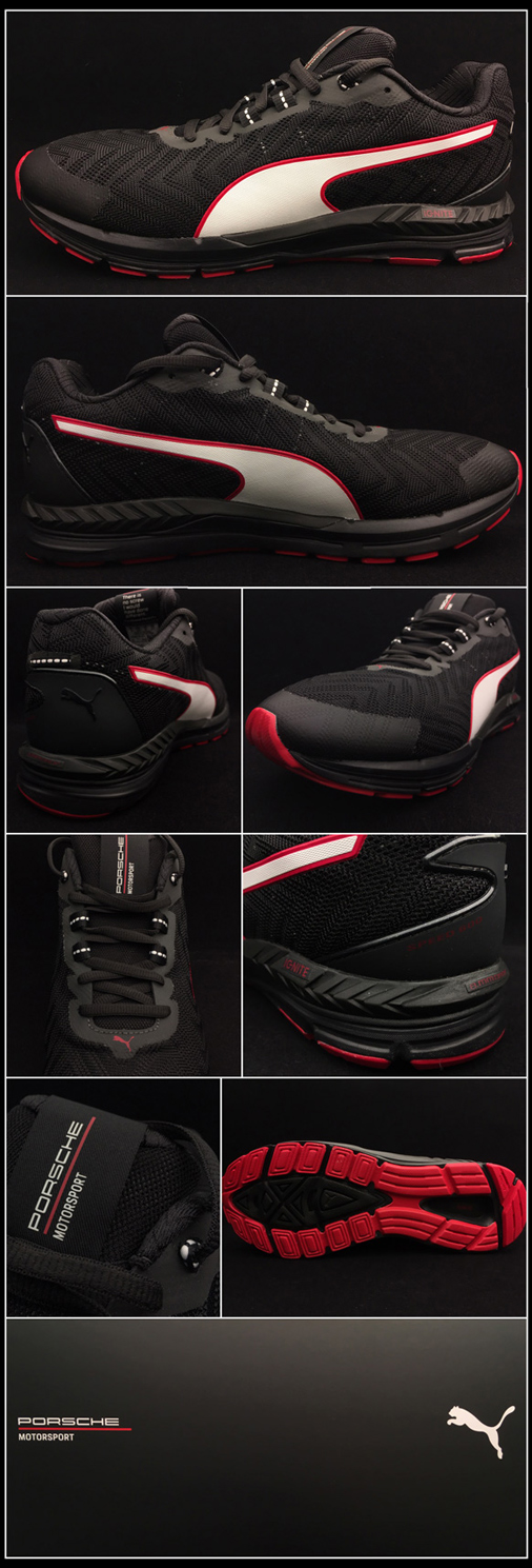 Chaussures mixte Porsche Motorsport Puma Chaussure de course Puma Ignite Speed 600 - Couleur noir / blanc / rouge En maille tricotée Airmesh sans couture légère, respirante et confortable Technologie Everfit + pour sécuriser le pied sans gêner le mouvement naturel Doublure spéciale Bootie Fit pour un un ajustement personnalisé Semelle typée gomme EverTrack + adhérence et traction Zone de propulsion pour un retour d'énergie direct Porsche Design WAP439LMS 139,95 € TTC / Incl. Taxes