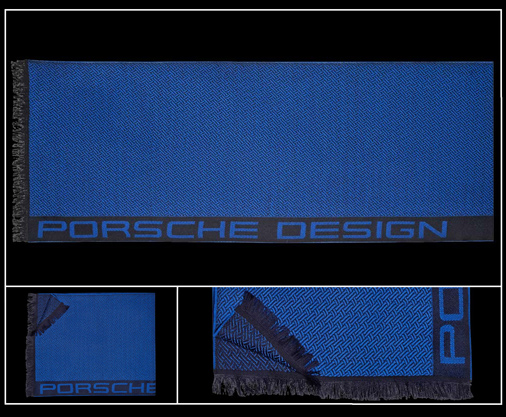 Echarpe Porsche Design Tec flex Business Fabriqué selon la technique Jacquard - Couleur Bleu Rebel / Noir Livrée dans un boîtier exclusif noir mat avec papier de soie Porsche Design Matière 100% Pure laine vierge - Made in Italy - Dimensions 48 x 180 cm Porsche Design 4046901297961