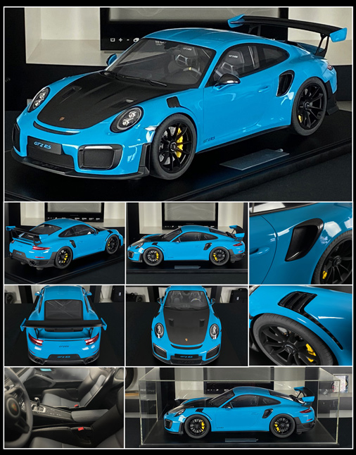 Porsche 991 GT2 RS 2018 Bleu Miami 1/8 - Minichamps 800620002 Modèle en résine - Vitrine incluse - Plaque gravée sur socle Edition limitée - 99 exemplaires numérotés 1995,95 € TTC / Incl. Taxes