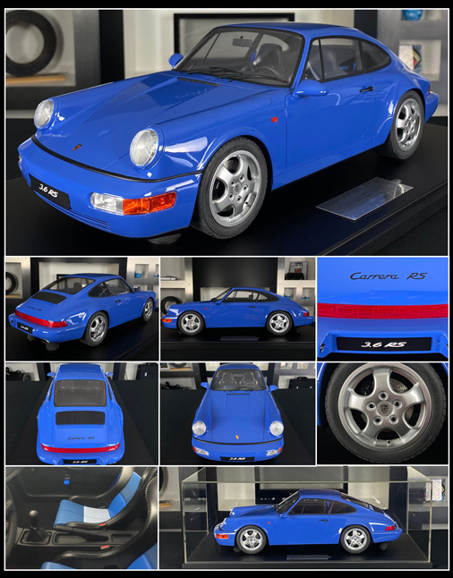 Porsche 964 Carrera RS 3.6 1994 Bleu maritime 1/8 - Minichamps 800657000 Modèle en résine - Vitrine incluse - Plaque gravée sur socle Edition limitée - 99 exemplaires numérotés 1499,95 € TTC / Incl. Taxes