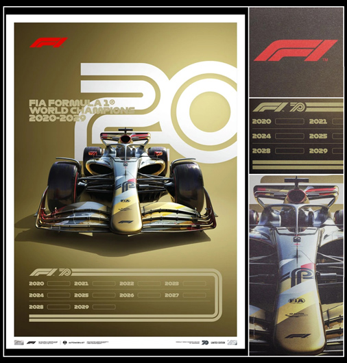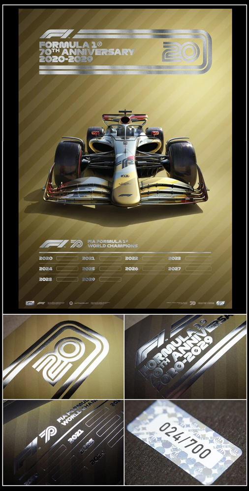 Poster "The future lies ahead" F1 - 70th anniversary 2020 / 2029 Luxury Edition - 50 x 70 cm - Impression sur papier 175g/m² Edition limitée - 700 exemplaires 119,95 € TTC / Incl. Taxes