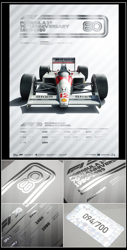 Poster McLaren F1 - 70th anniversary 1980 / 1989 Luxury Edition - 50 x 70 cm - Impression sur papier 175g/m² Edition limitée - 700 exemplaires 119,95 € TTC / Incl. Taxes