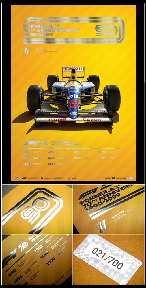 Poster Williams F1 - 70th anniversary 1990 / 1999 Luxury Edition - 50 x 70 cm - Impression sur papier 175g/m² Edition limitée - 700 exemplaires 119,95 € TTC / Incl. Taxes