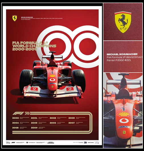 Poster Ferrari F1 - World champions 2000 / 2009 50 x 70 cm - Impression sur papier 175g/m² Edition limitée - 2000 exemplaires 49,95 € TTC / Incl. Taxes