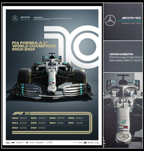 Poster Mercedes AMG Petronas F1 World champions 2010 / 2019 50 x 70 cm - Print on paper 175g/m²