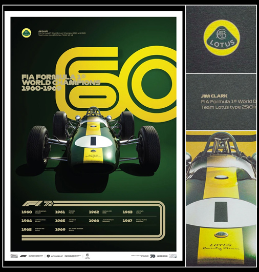 Poster Lotus F1 World champions 1960 / 1969 50 x 70 cm - Print on paper 175g/m²