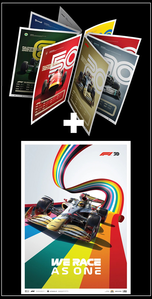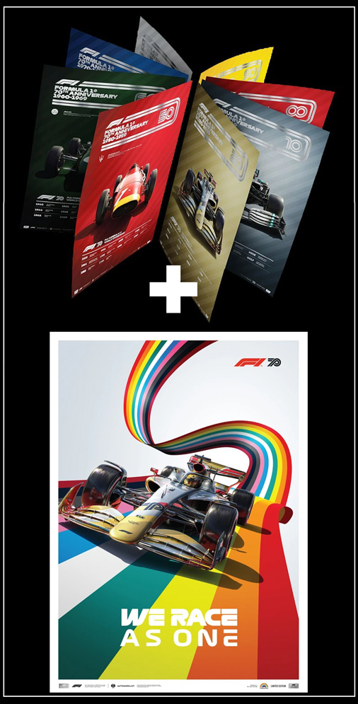 Set 8 Posters F1 - 70th anniversary 1950 / 2029 + Poster F1 "We race as one" FREE Luxury Edition