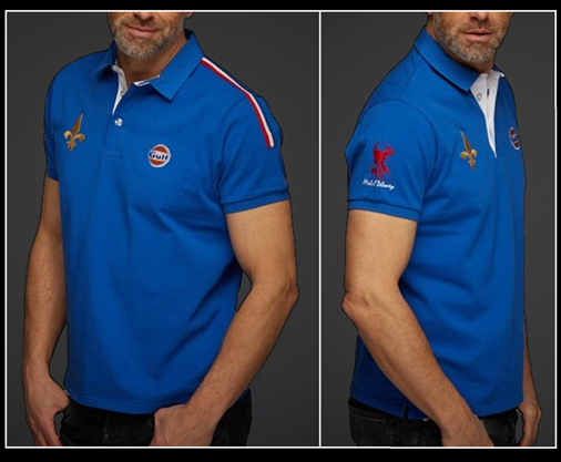 Polo Homme Gulf Le Mans 1970 Signature Michael Delaney personnage du film Le Mans Bande tricolore sur l'épaule gauche - Couleur bleu roi Col rugby en Twill - Matière 100% coton 79,90 € TTC / Incl. Taxes