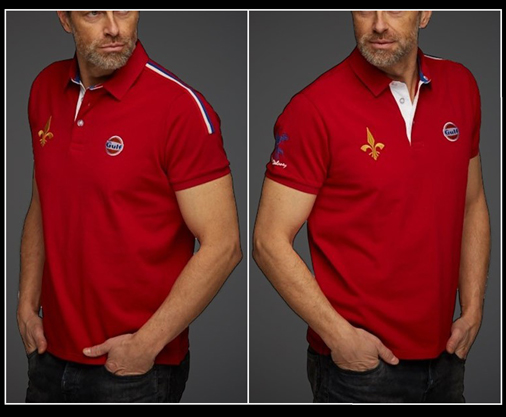 Polo Homme Gulf Le Mans 1970 Signature Michael Delaney personnage du film Le Mans Bande tricolore sur l'épaule gauche - Couleur rouge Col rugby en Twill - Matière 100% coton 79,90 € TTC / Incl. Taxes