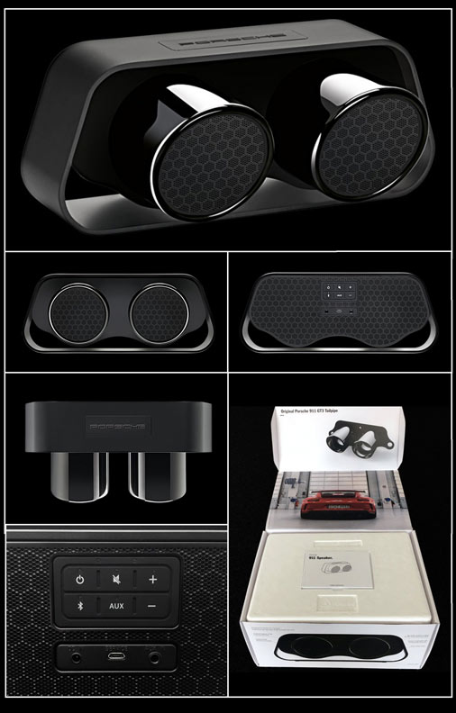 Enceinte Bluetooth Porsche 911 GT3 - Collection Masterpieces Design inspiré par les sorties d'échappement de la 911 GT3 Diffusion sans fil à partir d’un smartphone, tablette ou ordinateur Puissance 60 watts - Couleur noir - Dimensions 290 x 155 x 120 mm Made in Germany - Porsche WAP0501100J