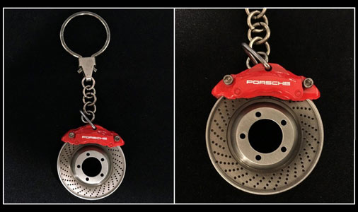 Porte-clés Porsche disque de frein Etrier mobile rouge marqué Porsche - Finement détaillé - Tout en métal Anneau acier de type omega - Porsche WAP0503020E