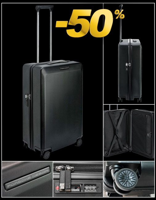 Trolley Porsche Design - Voyager Collection - Taille M Valise rigide ultralégère à 4 roulettes - Dimensions : 69 x 48 x 28 cm - Serrure à combinaison Matière : Polycarbonate - Contenance : 83 L - Poignée ergonomique Fermeture zippée ultra-sécurisée - Doublure intérieure : Polyester 5 ans de garantie - Porsche Design ORT05561