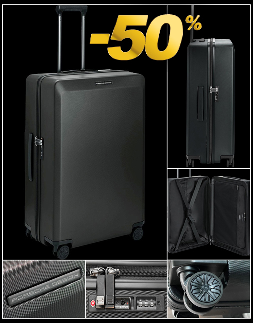 Trolley Porsche Design - Voyager Collection - Taille L Valise rigide ultralégère à 4 roulettes - Dimensions : 78 x 53 x 31 cm - Serrure à combinaison Matière : Polycarbonate - Contenance : 115 L - Poignée ergonomique Fermeture zippée ultra-sécurisée - Doublure intérieure : Polyester 5 ans de garantie - Porsche Design ORT05561