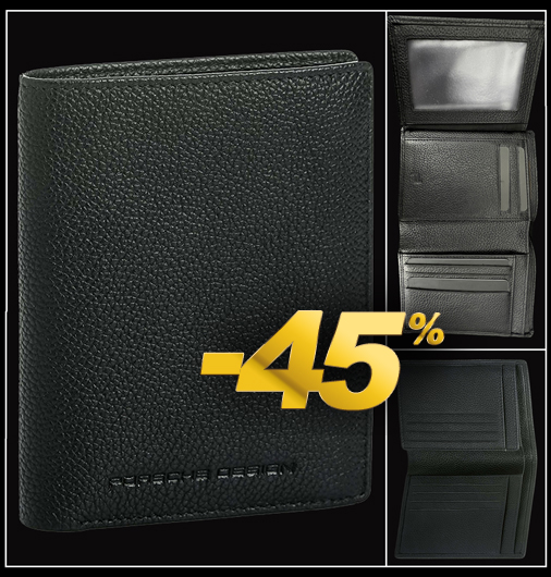 Portefeuille en Cuir 3 Volets Porsche Design 9 emplacements pour cartes de crédit - 1 compartiment pour les billets Filet carte d'identité - Protection RFID - Matière 100% cuir de veau Couleur Noir - Dimensions 9.5 x 12 x 2 cm Porsche Design 4056487043814 - OST09907