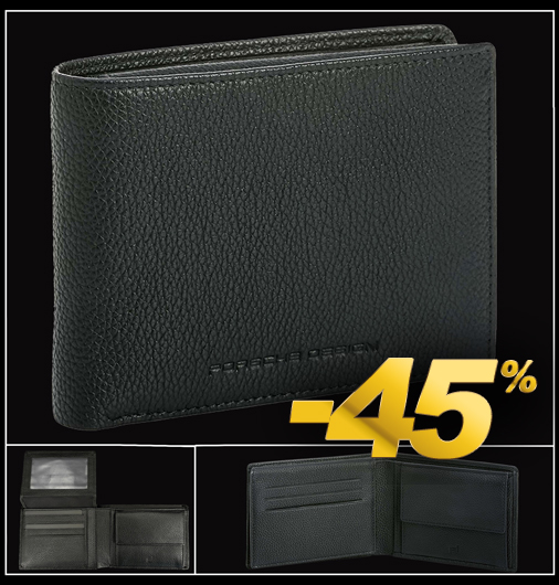 Portefeuille en Cuir Porsche Design 4 emplacements pour cartes de crédit - 2 compartiments pour les billets 1 compartiment pour les pièces - Protection RFID - Matière 100% cuir de veau Couleur Noir - Dimensions 11 x 9.5 x 2 cm Porsche Design 4056487043869 - OST09903