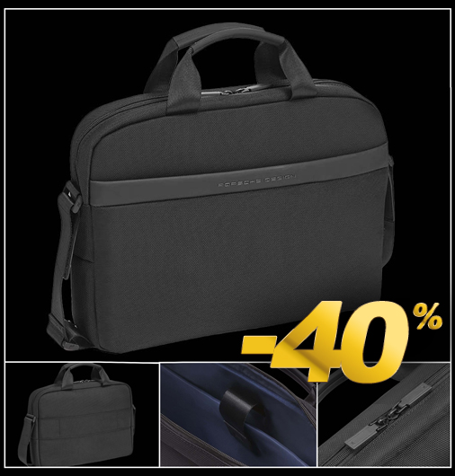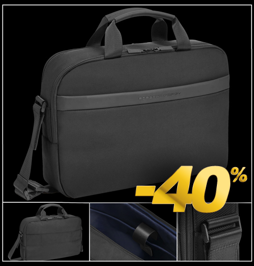 Porte Documents Porsche Design Voyager S Compatible avec ordinateur ou tablette 14.5" - Couleur Noir - Matière Nylon 3 poches internes dont une zippée - 1 poche sur l'avant - Dimensions 39 x 28 x 9 cm Passage pour trolley à l'arrière - 2 anses et 1 lanière réglable Porsche Design ONT01509.001