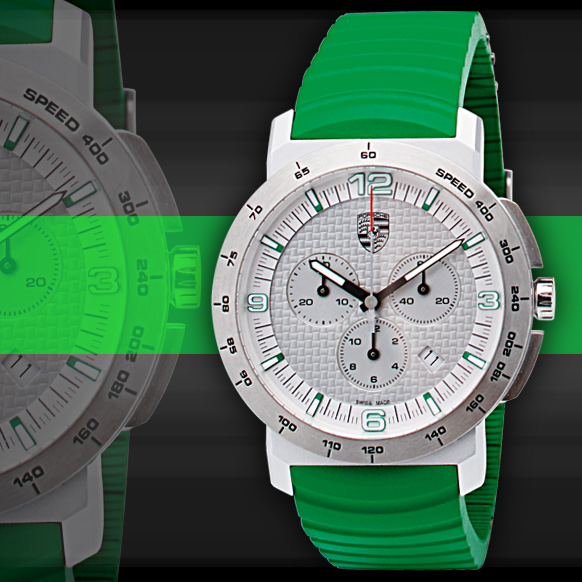 Montre Chronographe Porsche - Sport Classic Green Edition Mouvement suisse Ronda 13 diamants - Bracelet silicone - Boucle acier inoxydable Verre antireflets saphir - Boitier aluminium anodisé - Aiguilles luminescentes Fonction départ-arrêt avec mesure intermédiaire et tachymètre Etanche 5 ATM / 50m - Diamètre 42 mm - Epaisseur 11 mm Garantie 2 ans - Fabriquée en Suisse Porsche Design WAP0700850G