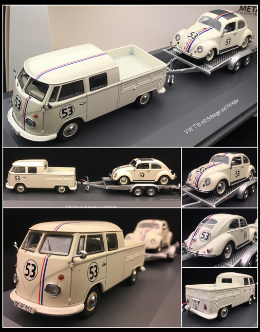 Volkswagen T1 avec remorque + Coccinelle Herbie Choupette n°53 - 1 : 43
