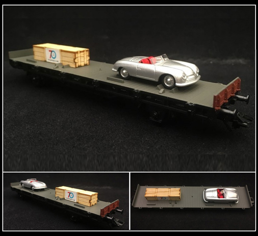 Wagon Porsche 70 ans - Les années 2010 Chargé d’un modèle de Porsche 991 Targa 4S et un Porsche 918 WP 1/87 - Märklin MAP10701018 - 45058 49,95 € TTC / Incl. Taxes