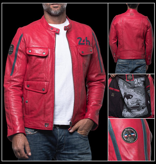 Veste en cuir homme 24h Le Mans Matière 100% cuir d'agneau de qualité - Doublure 100% Coton / Manches Polyester Couleur Rouge Racing - Coupe Regular - Col pressionné - Fermeture zippée 2 poches zippées - 1 poche poitrine - 2 poches intérieur Classic Legend Motors 27271-0282 459,95 € TTC / Incl. Taxes