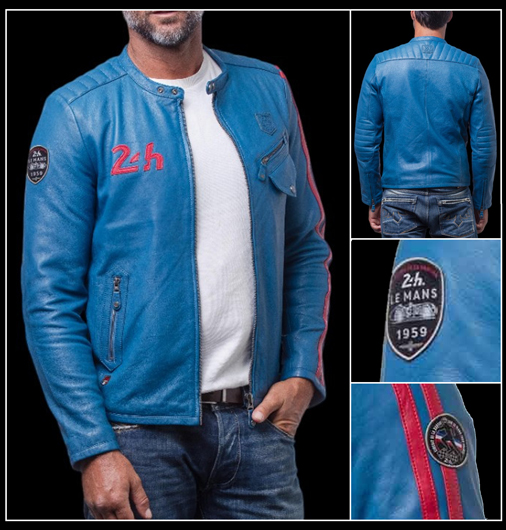 Veste en cuir homme 24h Le Mans Matière 100% cuir d'agneau de qualité - Doublure 100% Coton / Manches Polyester Couleur Bleu Océan - Coupe Regular - Col pressionné - Fermeture zippée 2 poches zippées - 1 poche poitrine - 2 poches intérieur Classic Legend Motors 27272-2773 459,95 € TTC / Incl. Taxes