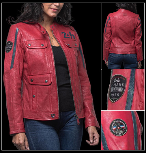 Veste en cuir femme 24h Le Mans Matière 100% cuir d'agneau de qualité - Doublure 100% Coton / Manches Polyester Couleur Rouge Racing - Coupe Regular - Col pressionné - Fermeture zippée 2 poches zippées - 1 poche poitrine - 2 poches intérieur Classic Legend Motors 27275-0282 389,95 € TTC / Incl. Taxes