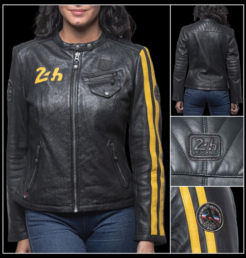 Veste en cuir femme 24h Le Mans Matière 100% cuir d'agneau de qualité - Doublure 100% Coton / Manches Polyester Couleur Noir - Coupe Regular - Col pressionné - Fermeture zippée 2 poches zippées - 1 poche poitrine - 2 poches intérieur Classic Legend Motors 27276-1504 439,95 € TTC / Incl. Taxes