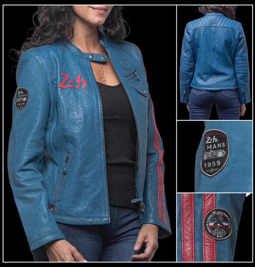 Veste en cuir femme 24h Le Mans Matière 100% cuir d'agneau de qualité - Doublure 100% Coton / Manches Polyester Couleur Bleu Océan - Coupe Regular - Col pressionné - Fermeture zippée 2 poches zippées - 1 poche poitrine - 2 poches intérieur Classic Legend Motors 27276-2773 439,95 € TTC / Incl. Taxes