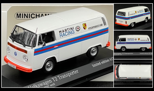 NEW Transporter Porsche Martini Racing Volkswagen Combi T2 1972 - 1 : 43