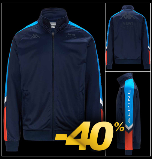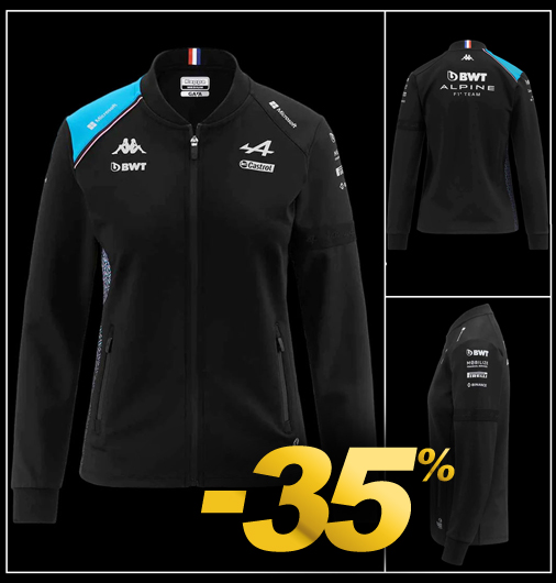 Veste femme Alpine F1 Matière 70% polyester / 24% vinyle / 6% élasthanne - Couleur Noir / Bleu Fermeture principale zippée - 2 poches latérales zippée Kappa 331C56W-A12