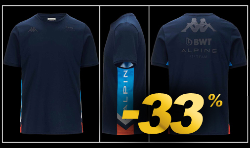 T-shirt homme Esteban Ocon Alpine F1 - Tailles L / XL / XXL seulement Matière 91% polyester / 9% élasthanne - Couleur Bleu Kappa 371B7HW