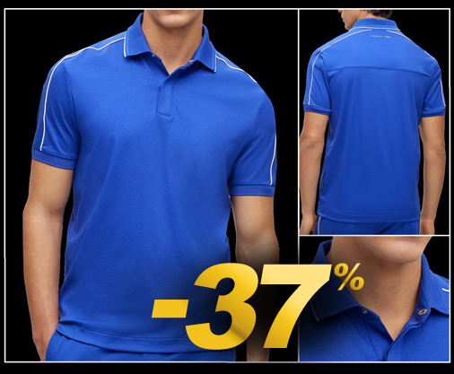 Polo homme Porsche x BOSS Matière Tissu interlock 100% coton mercerisé très doux - Couleur Bleu Col 95% Polyester 5% Élasthanne - Boutons BOSS métal brillant Col mao et passepoils contrastants - Patte de boutonnage invisible BOSS PENNROSE 260_PS 50486203