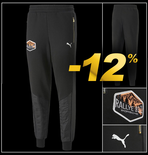 Pantalon homme Porsche 911 Rallye by Puma 2 poches zippées - Matière 66% Coton / 34% Polyester Alliance bi-matière - Taille et chevilles élastiquées - Couleur Noir Puma 534822-01