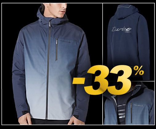Veste à capuche homme Porsche Turbo Coupe-vent imperméable et respirant - Matière 100 % Nylon - Couleur bleu marine / noir Capuche avec cordons de serrage internes - 2 poches latérales extérieures zippées Deux poches poitrine zippées extérieur et intérieur Porsche WAP217LTRB