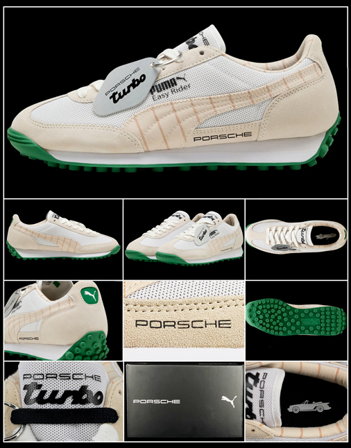 Chaussures mixte Porsche 911 Turbo Matière du dessus en cuir de vache et textile - Semelle en Caoutchouc Doublure en textile et Œillets en cuir - Couleur Blanc Alpin / Vert Plaque collector métallique incluse - Inclus deux paires de lacets Puma 308649-02