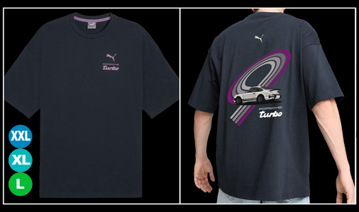 T-shirt homme Porsche Turbo - Tailles L / XL / XXL seulement Coupe Oversize - Couleur Noir - Matière 100% Coton Puma 626380-01 59,95 € TTC / Incl. Taxes