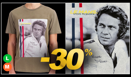 T-shirt homme 24h Le Mans Steve McQueen - Tailles M / L seulement Matière 100% Coton - Couleur Vert Kaki 24h Le Mans SQ232TSM12-324