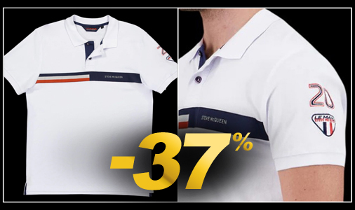 Polo homme 24h Le Mans Steve McQueen Matière 50% Coton / 50% Polyester - Couleur Blanc 24h Le Mans SQ251POM01-000