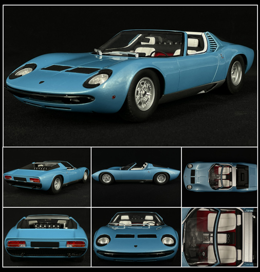 Lamborghini Miura P400S Roadster 1968 Bleu azur 1/18 - GT Spirit GT324 Edition limitée - 999 exemplaires numérotés 104,95 € TTC / Incl. Taxes