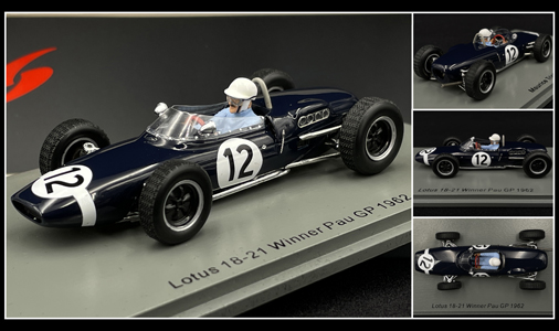 Lotus 18-21 n°12 - Vainqueur Pau GP 1962 1/43 - Spark S7451 Edition limitée - 1000 exemplaires numérotés 69,95 € TTC / Incl. Taxes