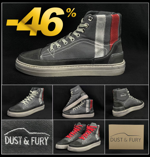 Chaussures homme Dust & Fury Matière Toile / Cuir - Doublure Cuir / Textile - Semelle Cuir / Caoutchouc - Couleur Gris Finition vieillie Finish Line - Fabriquées à la main en Union Européenne 2 paires de lacets Blanc / Rouge