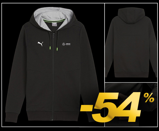 Hoodie homme Mercedes-AMG F1 Matière 100% Coton - Couleur Noir - Capuche réglable Fermeture zippée - 2 poches latérales Puma 623744-01