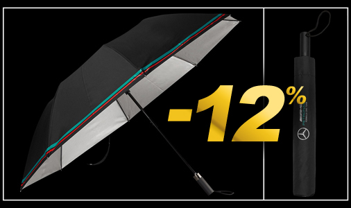 Parapluie Compact Mercedes-AMG F1 Poignée en caoutchouc - Matière 100 % Polyester - Couleur Noir / Vert / Rouge Mercedes 701202267-001