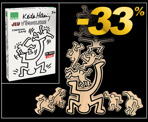 Jeu d'équilibre Keith Haring 11 pièces en bois massif - Multiples combinaisons possibles Dimensions 22 x 32,5 x 3,5 cm Vilac 9217
