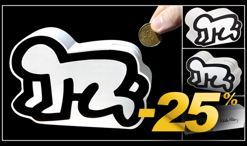 Tirelire Keith Haring Matière Bois Massif - Dimensions 14 x 9 x 5 cm - adaptée aux pièces et billets Bouchon en caoutchouc - Vilac 9219