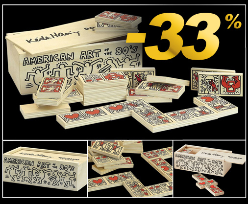 Jeu de Dominos Keith Haring 28 dominos en bois décoré - Dimensions 20 x 10 x 7 cm Vilac 9264