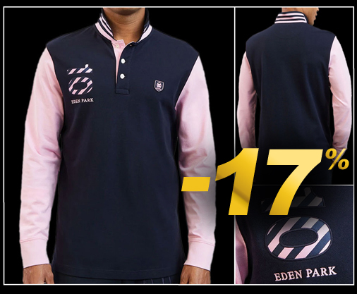 Polo Manches Longues homme Eden Park - Tailles S / XL seulement Matière 100% Coton Piqué - Couleur Rose / Bleu - Col 3 boutons Eden Park H23MAIPL0019