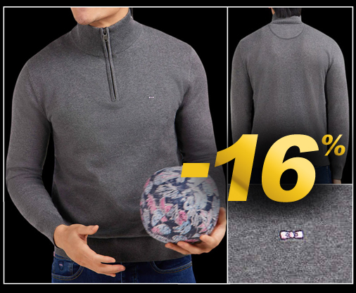 Pull homme Eden Park Matière 100% Coton - Couleur Gris Chiné Foncé - Col camionneur Eden Park PPKNIPUE0022-GRF
